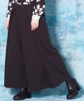 ドレッシーな雰囲気が印象的かつ伸縮性のある着心地も考慮したストレッチTRスーツ素材×フロントの両サイドウエスト下から裾にかけて折返しの立体タックプリーツを構築した奥行きあるロングスカートを穿いたかのような極太ワイドフォルムがインパクトフル。極端に無駄を削ぎ落したギミックがシルエットのインパクトをストレートに表現。