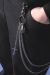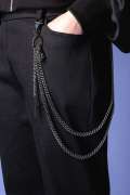 機能的な面というよりもお気に入りのボトムスの表情を変えてくれるアクセサリーとしても注目のウォレットチェーン。長さの異なる大ぶりチェーンを2連でドレープさせたアッパーなインパクトスタイルが◎