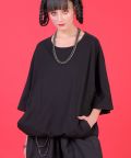 裾に入れた幅広のリブでキュっと絞る事により、柔らかな立体感とボリュームをもたせながらパンツインした時のようなファニーなバルーンシルエットを構築。ポケットを配置することで可愛らしいプルオーバーのような感覚もミックス。止める箇所を変化させて丈感やスタイルの変化を自由に表現できる【自分本位】な主役顔Tシャツ。