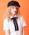 【B】小ぶりのリボンにロングコードを垂らしたモードなスタイル。