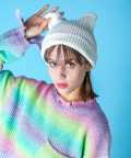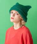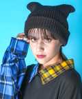 ボリューミーな肉厚のリブ編みニット×被るだけでキュート心が爆発するネコ耳/耳付きスタイルが最強スウィートな一品。ピンっとしっかり立つ猫耳スタイル、インフルエンサー界隈、地雷系、韓国ファッション、インスタ映え、TikTok・・・全部飲み込んで『カワイイは正義』なキラーアイテム。