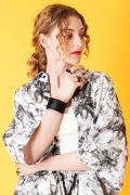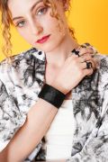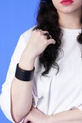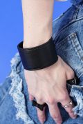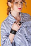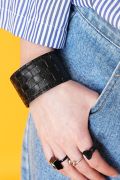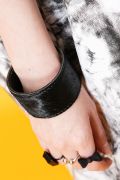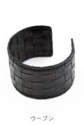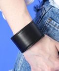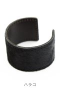 太めのスタイルが印象的な革ブレスレット/バングル。固形の型にそのまま無造作にはめられる無駄を削いだミニマムな作りが◎