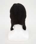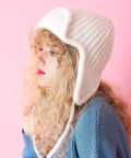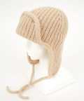 しっかりとした肉感と抑揚あるはっきりとした編み込みが上品なニット×レトロクラシックなミリタリーニュアンスのフライトハット(パイロット)デザインが印象的。コード付きのイヤーフラップはそのまま垂らしても頭頂部で結んでも◎
