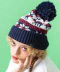 an meets zakka ノルディック柄ボンボンニット帽