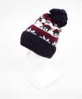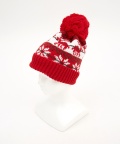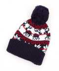 ノルディック柄ボンボンニット帽 / ニットキャップ メンズ レディース ユニセックス ビーニー 雪柄 トナカイ柄