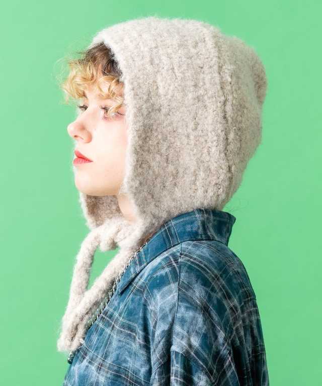 モコモコ起毛ニットフード帽 / メンズ レディース ユニセックス 帽子 頭巾 ニット帽 イヤーフラップ 耳当て