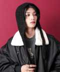 フード/フーディースタイルが新しい帽子/ハットのカタチ。パッと見のニット帽ニュアンスでザクっと頭巾のようにそのまま被っても、コードを結んでマフラーやネックウォーマーのように装着してもいい、コーデやスタイルによって自由度の高いカスタム性が機能的。