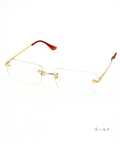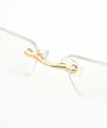 一見して知的で上品な雰囲気が印象的な淵なしのリムレスデザインがエレガント。モードな雰囲気を演出するスクエア型のフォルムベース、サイドテンプルに細みのメタルフレームを採用しクラシックな雰囲気×ラグジュアリーなアクセントをミキシング。90s、Y2K、古着ミックススタイルなどクラシックブームなトレンドにも相性抜群な一本。