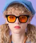 一見して知的で上品な雰囲気が印象的なウェリントンベースにスクエア型をミックスしたトレンドライクなフォルム×レトロでクラシックな空気感の大きめ黒縁スタイル×ポップでクールなカラーレンズ仕様がエレガント。個性やスタイル、気分に合わせてチョイスできる豊富なレンズカラーバリエーションで90s、Y2K、古着ミックススタイルなどクラシックブームなトレンドにも相性抜群な一本。