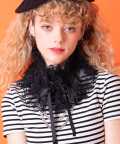 an meets zakka リボン&フラワーコットンレースフリルチュール付け襟