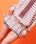 マットな色味とタフな質感が上品な合成皮革の長くとった紐を巻き付けるだけ・・レトロかつアンティークな空気感を感じさせながらも、無駄の一切をそぎ落としたミニマルでシンプルなスタイルが圧倒的にモードフル。長めに垂らしたり、リボン結びしたり、シングルでもダブルでも、と自由な感性とアイデアでアレンジ可能。古着ミックススタイルにも相性抜群。