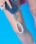 アシンメトリーでツートーンカラーを形成した大粒パールストラップが一見して上品かつレトロキュートなムードを演出。簡単に引っかけて装着するフックにはハート型を用いて甘めのニュアンスをミキシング。インフルエンサー界隈、韓国ファッション、SNS,インスタ映え、TikTok・・・全部飲み込んで『カワイイは正義』なキラーアイテム。