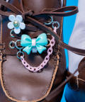 お気に入りの靴やスニーカーを自分だけの感性でカスタムデコレーションする新定番のアイコニックな新感覚アクセサリー。靴ひもにクリップフックで引っかけるだけの超簡単なギミックがストレスフリーでメンズレディース問わずユニセックスで取り入れたい一品。