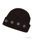 ハトメホールスタッズニット帽 / ユニセックス ニットキャップ ビーニー リブ編み