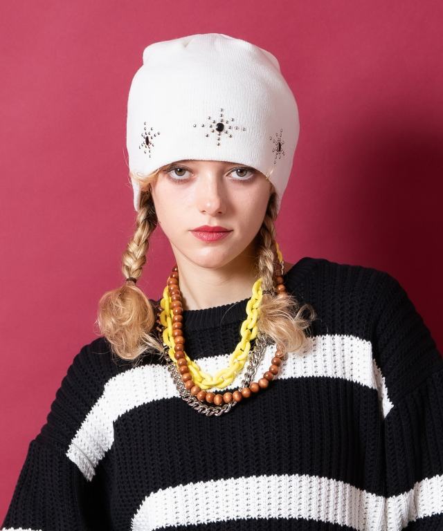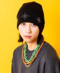 an meets zakka ネイティブ調ブラックストーンボールスタッズニットビーニー