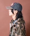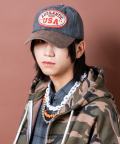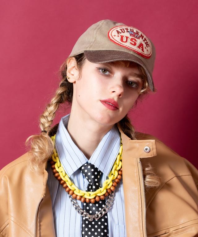 90sの空気感をフルに醸し出す大きなUSAワッペン×まるでヴィンテージ古着のようなエイジングを感じさせる色落ちのピグメント加工コットンと無機質なクラック感を与えた合成皮革のバイザーの切り替えバイカラーコンビデザインが一見してグッドムード。クラシカルな雰囲気たっぷりの6パネル&カーブバイザー×機能はもちろん見た目にもクラシックなバックアジャスタースタイルが本命かつ主役顔な一品。90s、Y2Kスタイル、アメカジ、古着ミックスなどクラシックなムードのスタイルはもちろん、韓国ファッション、韓国ストリート、スタイリッシュなモードスタイルやストリートスタイルのハズシアイテムとしても相性抜群。