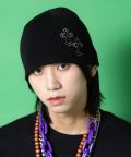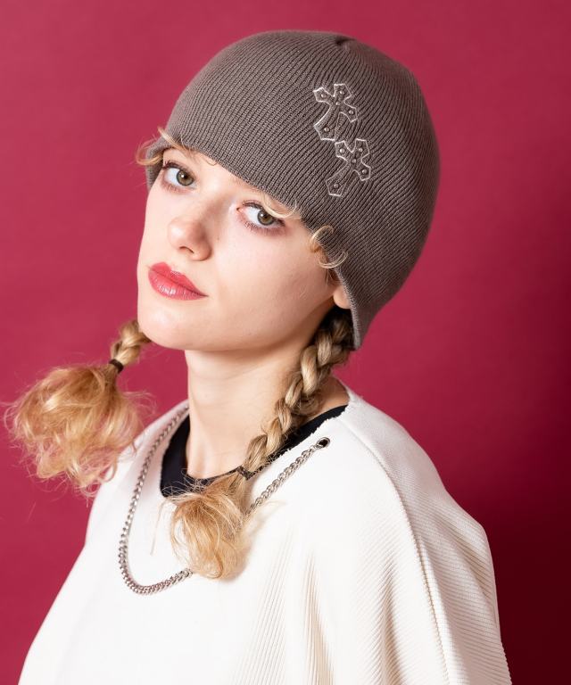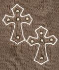 ボールスタッズクロス刺繍ニットビーニー / ユニセックス ニット帽 ワッチキャップ 帽子 アクリル 十字架