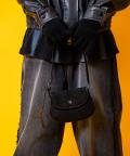 非常に滑らかな触感と上品な表情がレトロな高級感を漂わせるスウェード加工を施した合成皮革×可愛らしくもアンティークな雰囲気のお財布のようなカタチのフラップデザインがエレガント。艶ありの合成皮革で切り替えしたベルトやパイピングでシンプルデザインにワンアクセント。レトロな90s/Y2Kスタイル、古着ミックスはもちろん、韓国ストリートファッションやモードスタイル、グランジから、アメカジなどのカジュアルなスタイルのハズシアイテムとしても相性抜群な一品。