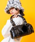 an meets zakka 2連リベットスタッズ合成皮革ミニボストンバッグ