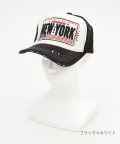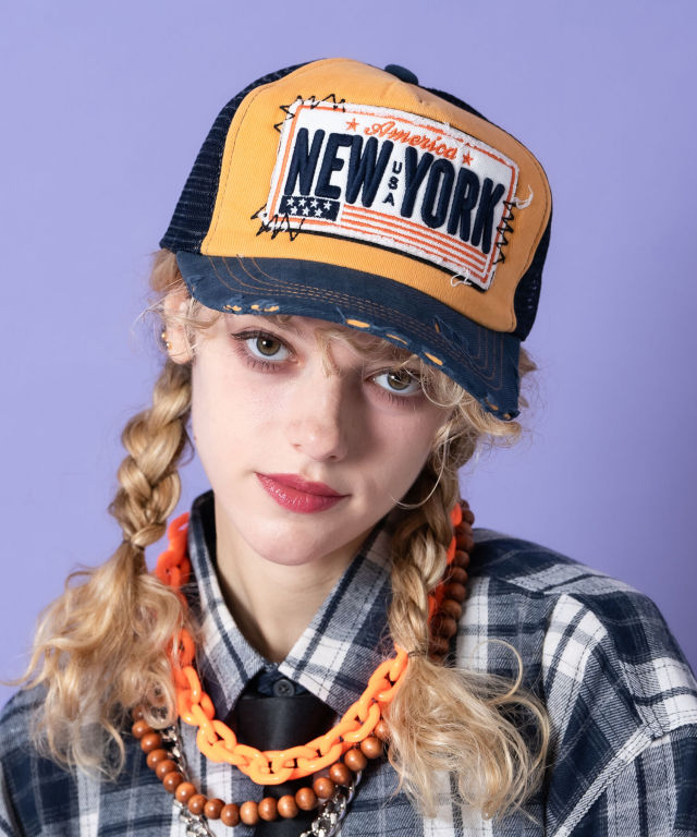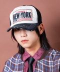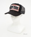 NEWYORKロゴ&ワッペン刺繍ダメージレトロメッシュキャップ / ユニセックス トラッカー 帽子 フリーサイズ