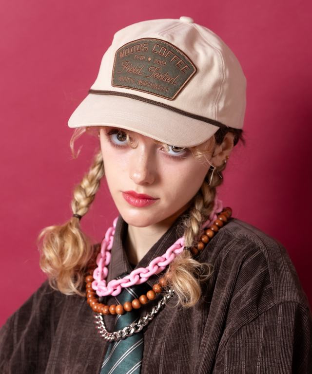 90sの古き良きアメカジを彷彿とさせるロゴ刺繍を施した大ぶりのフェルトワッペンデザイン×表面に柔らかくピーチ加工のような高級感とクラシックムードを演出する加工を施したしっかりとした肉感あるコットン生地仕様がグッドムード。ワッペンとボディーとの配色の妙、レトロな雰囲気を加速させる無骨なコード付きデザインも世界観にマッチ。一見してレトロでクラシカルな雰囲気たっぷりのカーブバイザー×機能はもちろん見た目にもクラシックなバックアジャスタースタイルが本命かつ主役顔な一品。90s、Y2Kスタイル、アメカジ、古着ミックスなどクラシックなムードのスタイルはもちろん、韓国ファッション、韓国ストリート、スタイリッシュなモードスタイルやストリートスタイルのハズシアイテムとしても相性抜群。その日の気分やコーディネートの微妙なニュアンスにも答えてくれるカラーバリエーションも◎
