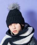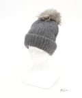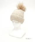 ビッグファーボンボン付き肉厚リブニット帽 / ユニセックス ニットキャップ 帽子 ポンポン