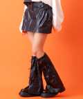 スーパーシャーリングレッグウォーマー&コーティングサイドポケットショートスカート / セット レディース メタリック ミニスカート