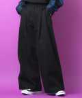 ややフレアなバランスで広がる極太フォルム×クラシックなニュアンスを盛り上げる立体的なツータック仕様で極太のレングスに立体感をもたせたアーティスティックなギミックがモードフル。ドローコードを配置して裾を絞れるギミックで、靴を覆う裾のモードなニュアンス×裾絞りのバルーンフォルムの2WAYで楽しめるアプローチも◎。