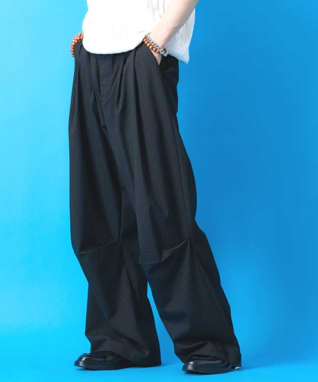 ドレープニータックピンストライプフレアツータックスラックス / メンズ レディース ユニセックス ワイドパンツ 柄 パラシュート