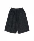 定番ボトムスのハーフパンツ/ショートパンツスタイル。90s、Y2K、古着ミックススタイルなどの流れからもレトロな空気感が印象的なデニム使いはマストなデザインの一つ。ゴムリブウエスト&ドローコードのイージーパンツギミックでのメンズレディース問わずユニセックスで穿けるストレスフリーなフリーサイズ仕様が◎