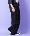 超極太のストリートフルなボリュームスーパーワイドシルエットをベースに、デザインポケットを連打しサイドに大きなカーゴポケットを配置しカーゴパンツスタイルをミキシング。膝下に配置したジップを切り離せばルーズなハーフパンツとしても穿ける2WAY仕様のコンバーチブルギミックで着こなしの幅を拡張。リラクシングムードたっぷりなスウェットパンツ、モードミリタリーなカーゴパンツ、アクティブに取り入れたいカーゴハーフパンツ・・・一本で遊び倒せる『使える』マストボトムス。