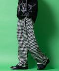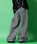 チェック柄コットンパイピングラインロールアップデザインツータックスーパーワイドパンツ / ユニセックス メンズ レディース トラウザーズ