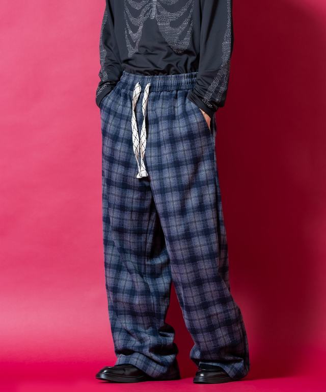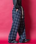 レトロチェック肉厚ウールタッチ起毛TRイージーワイドパンツ / ユニセックス 格子柄