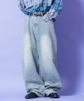 レトロな雰囲気とY2K、90sやアメカジ、古着ミックススタイルなどの台頭で注目のビンテージライクなウォッシュド加工デニムパンツ。オーセンティックなジップフライ&ベルトループのメンズレディース問わずユニセックスで穿ける&ラフなストリートニュアンスで穿き崩したいダボダボワイドなオーバーサイズシルエットが◎