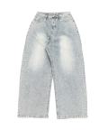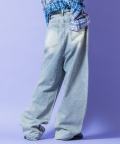 ハイパージルコニアラインストーンワイドヴィンテージウォッシュブルーデニムパンツ / ユニセックス ジーンズ オーバーサイズ