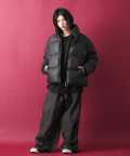 ストリートライクなボコボコっとしたボリュームのキルティングながら艶消しのマットなカラーリングが印象的な合成皮革仕様でモードスタイルへとブラッシュアップ。裾内にあしらったドローコードを絞ってボリュームやシルエットを変化できるギミック、コーデの幅を広げてくれるダブルジップ仕様のファスナーなど細部のディティールも印象的。
