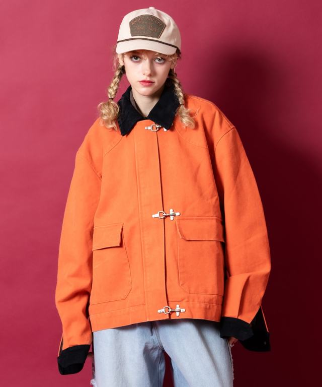 ピグメントキャンバスコーデュロイ襟ファイヤーマンワークジャケット / ユニセックス メンズ レディース オーバーサイズ カバーオール