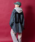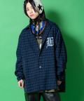 a.p.o.v. ビッグナンバリング&ロゴオーバーサイズ染抜チェックデニムシャツジャケット