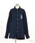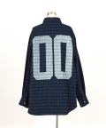 ビッグナンバリング&ロゴオーバーサイズ染抜チェックデニムシャツジャケット / ユニセックス メンズ レディース カバーオール