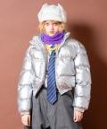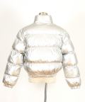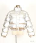 メタリックリップストップクロップド中綿ジャケット / ユニセックス 短丈 パフジャケット シャイニー 立ち襟 ハイネック スタンド