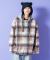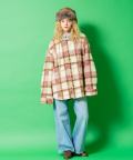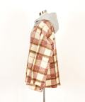 a.p.o.v. チェック柄カーリーボアスウェットフード切り替えオーバーサイズシャツジャケット