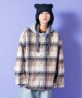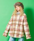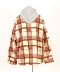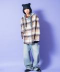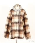 チェック柄カーリーボアスウェットフード切り替えオーバーサイズシャツジャケット / ユニセックス ファー アウター