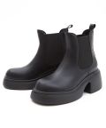 滑らかにカーブしながらやや丸みをもたせた力強くもフェミニンなニュアンスが上品なフォルム、ストレスフリーな脱ぎ履きと見た目にも上品でクラシカルなモード感を漂わせる定番人気のサイドゴアデザイン。高級感ある滑らかな表情のブラックスムースPUレザー×汎用性と機能性を併せ持つショートブーツスタイルが◎