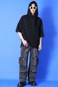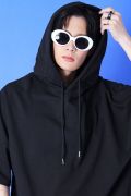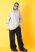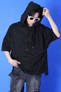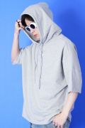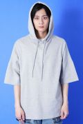 オーバーサイズ甘編み裏毛半袖パーカー / フーディー プルオーバー