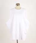 ダブダブの超ワイドな身幅、1枚でカットソーライクに着れる肩を落としたドロップショルダー、ロング丈感で表現するスーパールーズ/オーバーサイズシルエットが印象的。ユルっとしたやや広めのクルーネックが醸し出すスウィートなルーズニュアンスとビッグシルエットも相まって、メンズはもちろんユニセックスで女の子はワンピースとして着ても◎