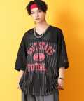 a.p.o.v. -ankoROCK's select- レトロロゴ&ストライプメッシュサッカーゲームシャツ / メンズ レディース オーバーサイズ 半袖 カットソー ユニフォーム