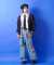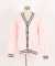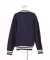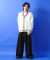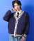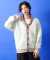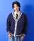 ライン入りのアクリルチルデンニットをベースに、ケーブル編み、ハイゲージ編みと左右で異なる表情の編み込み模様で切り返したアシメスタイルがエレガント。プレッピーやトラッドなニュアンスとギミックデザインながらもミニマルなモード感も感じさせる上品な一着。