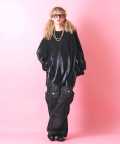 無地ボディの中央付近から裾に向かってグラデーションを構築しながら、まるでハードな汚れのようなダートな雰囲気のペイントをスプレーでプリントしたモードなスタイルが印象的。ビンテージライクなニュアンスにアンニュイなグランジテイスト、Y2K、90sやアメカジ、古着ミックスコーデなどレトロなニュアンスの流れを汲んだスタイルとも相性抜群。