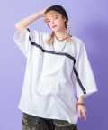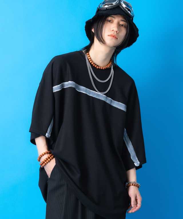 ハンドペイントテイストラインスーパーオーバーサイズTシャツ / 半袖 カットソー メンズ レディース ユニセックス ビッグシルエット コットン