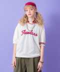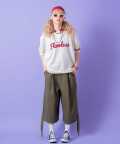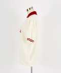 レトロアンティークな空気感を奏でるムニムニっとした柔らかな触感が印象的なパイル調のポリニット仕様&襟とボディーで配色になったツートーンカラーが一見してエレガント。フロント胸部へのクラシカルな筆記体ロゴ、アシメで片側の袖口のみに施した2本ラインデザインでレトロムードを加速。アメカジや古着ミックススタイルにも相性抜群な一枚。